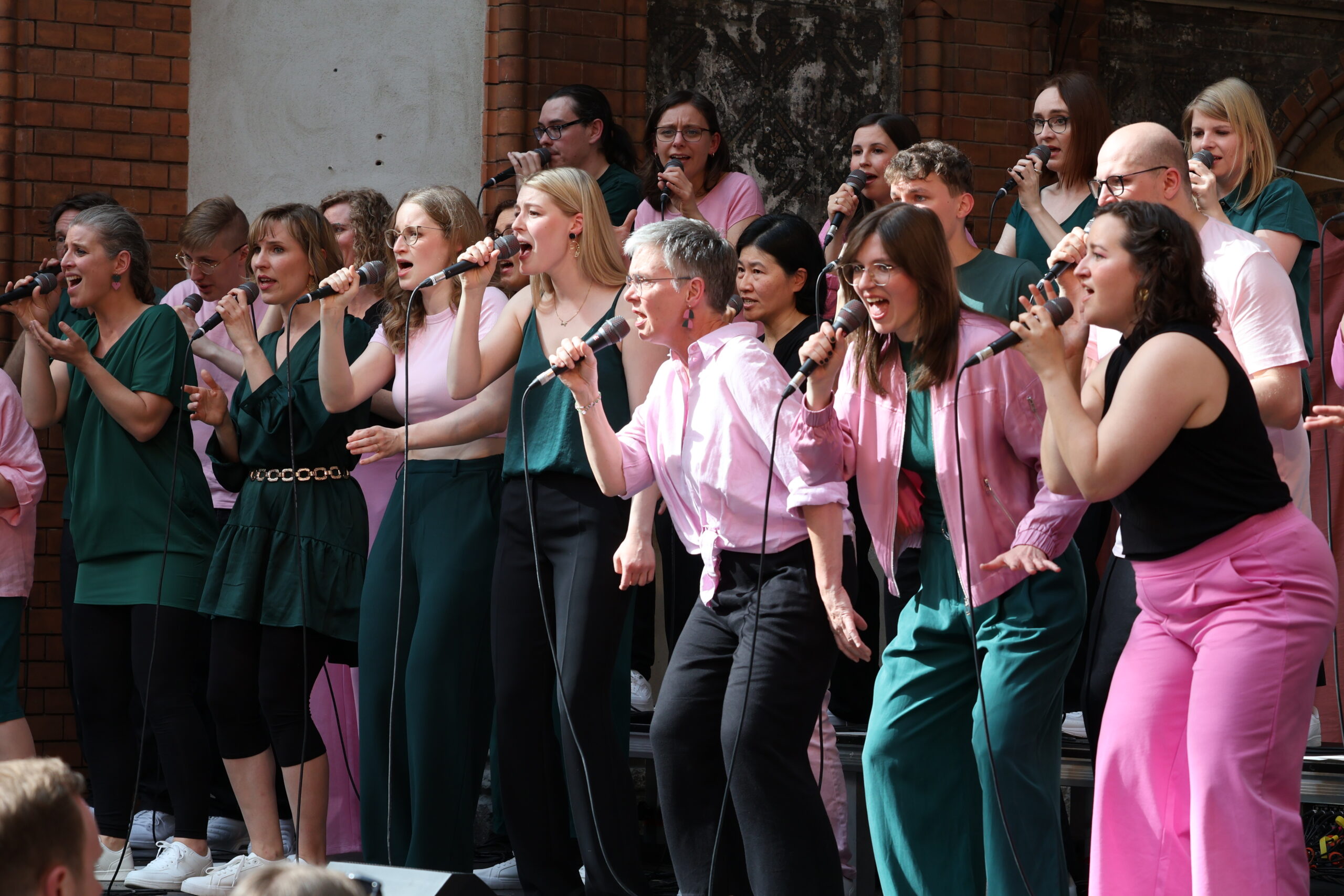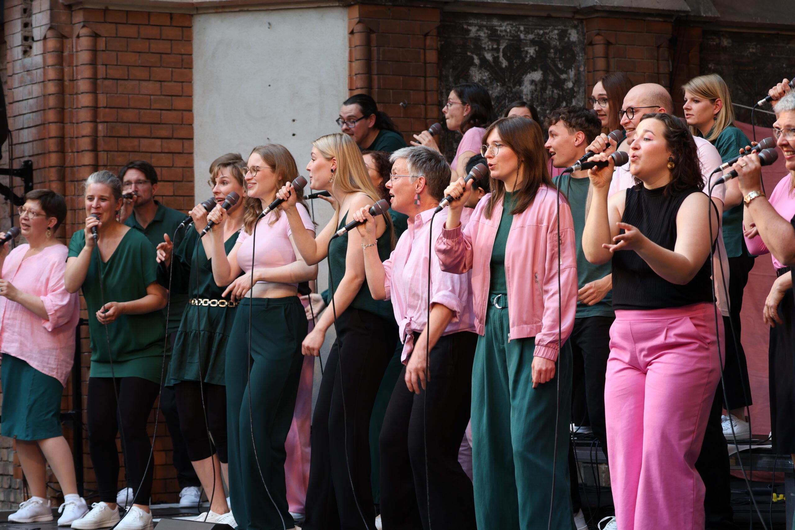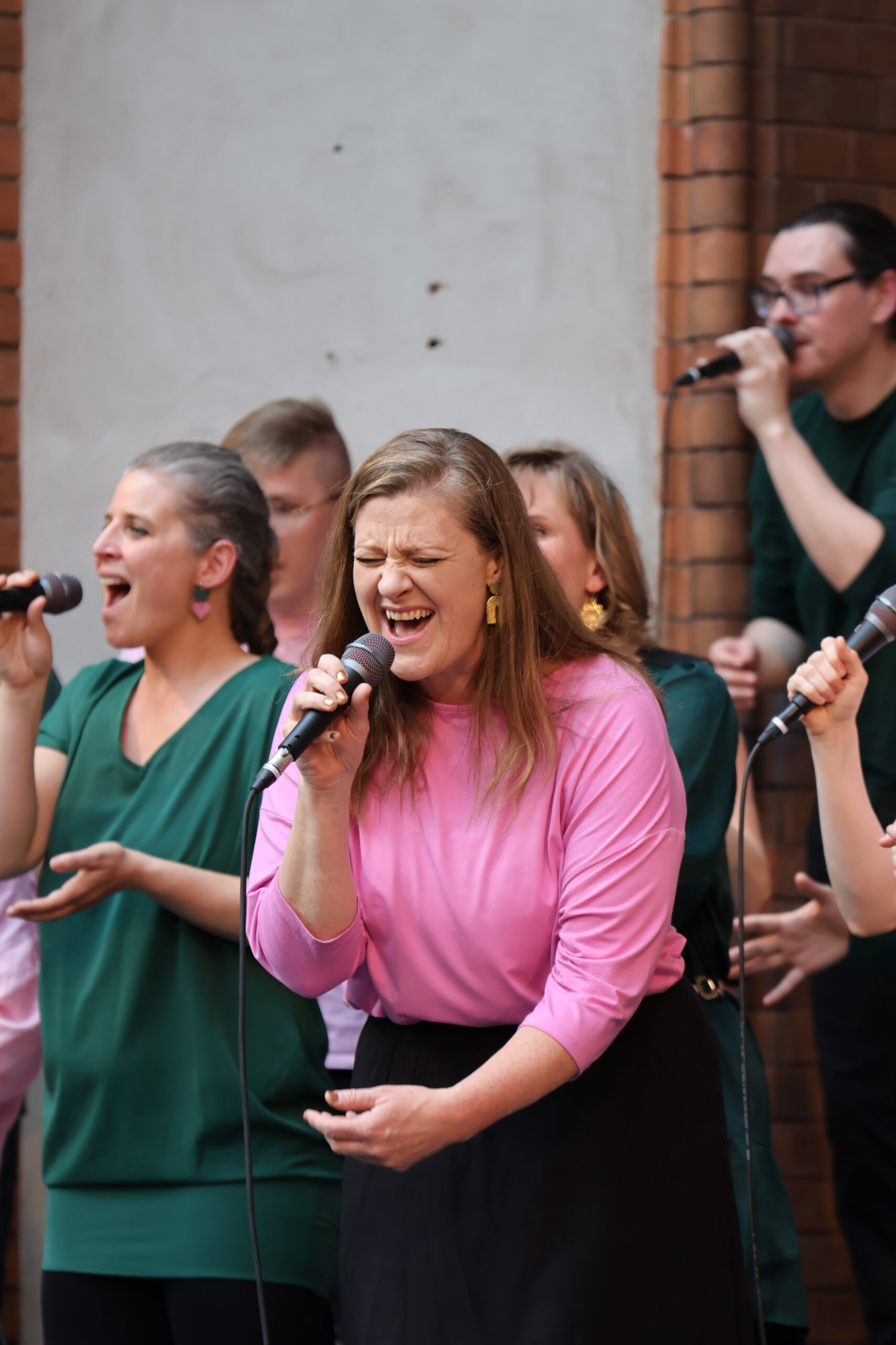 VOCANO aus Dresden. Das bedeutet mitreißenden A Cappella Vocal Pop, elektrisierenden Sound, authentische Momente und GLOWING VOICES.